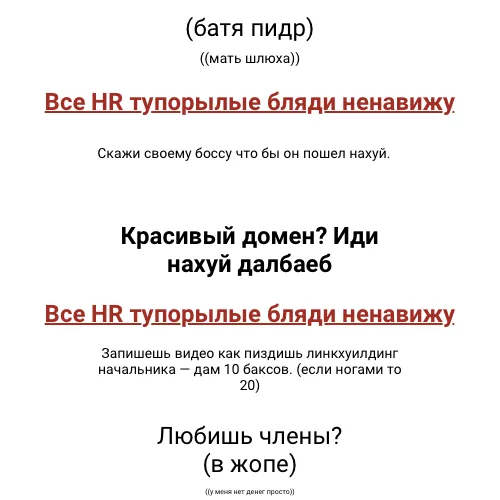 ХУЙНЯ ЕБАЛ В РОТ ВАС ВСЕХ. НЕТ ДОРВЕЯМ НЕТ СЕОШНИКАМ НЕТ ПОРНО НЕТ ХУЯМ